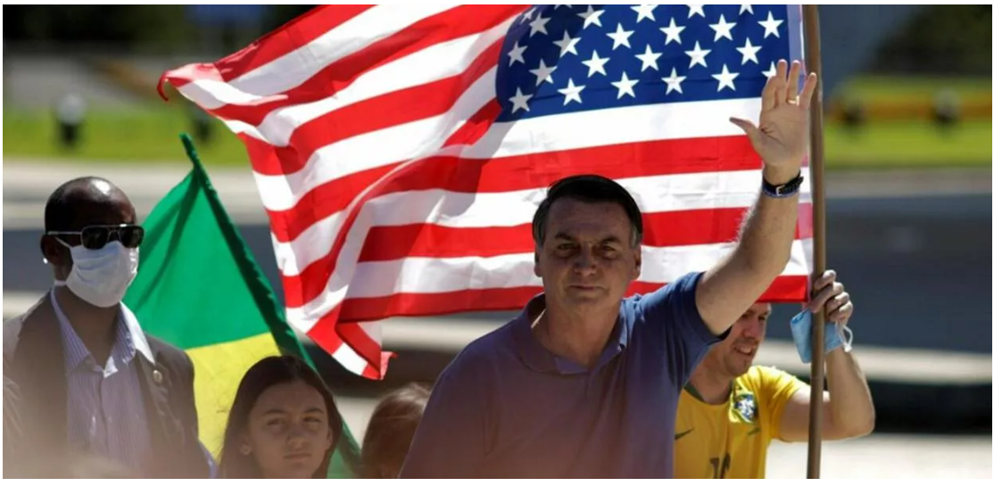 - Bolsonaro e bandeira americana