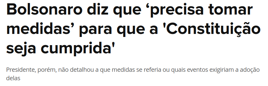 - Bolsonaro diz que 'precisa tomar medidas' para que a 'Constituição seja cumprida'